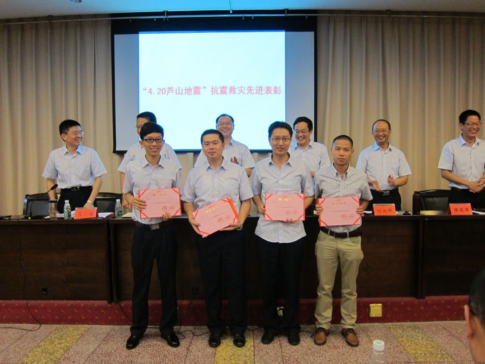 會(huì)議還對(duì)“4.20蘆山地震”抗震救災(zāi)先進(jìn)集體和先進(jìn)個(gè)人進(jìn)行了表彰,并號(hào)召全體黨員、廣大職工以先進(jìn)為榜樣,牢記責(zé)任、齊心協(xié)力、共同奮斗,為推動(dòng)我院跨越發(fā)展做出應(yīng)有的貢獻(xiàn)。
