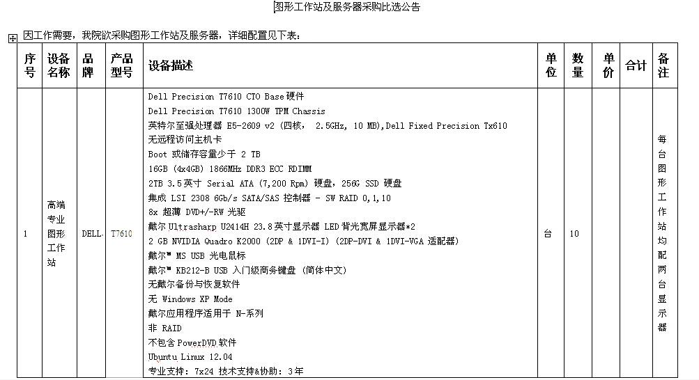 圖形工作站及服務(wù)器采購比選公告