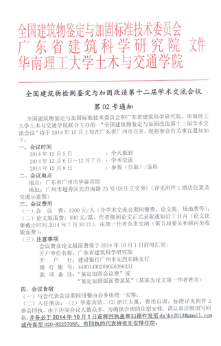 全國建筑物檢測(cè)鑒定與加固改造第十二屆學(xué)術(shù)交流會(huì)第02號(hào)通知