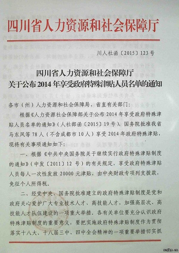 根據(jù)《人力資源社會(huì)保障部關(guān)于公布2014年享受政府特殊津貼人員名單的通知》(人社部函【2015】19號(hào)),國(guó)務(wù)院批準(zhǔn)我院總工程師、高級(jí)工程師(正高)吳體享受2014年政府特殊津貼。