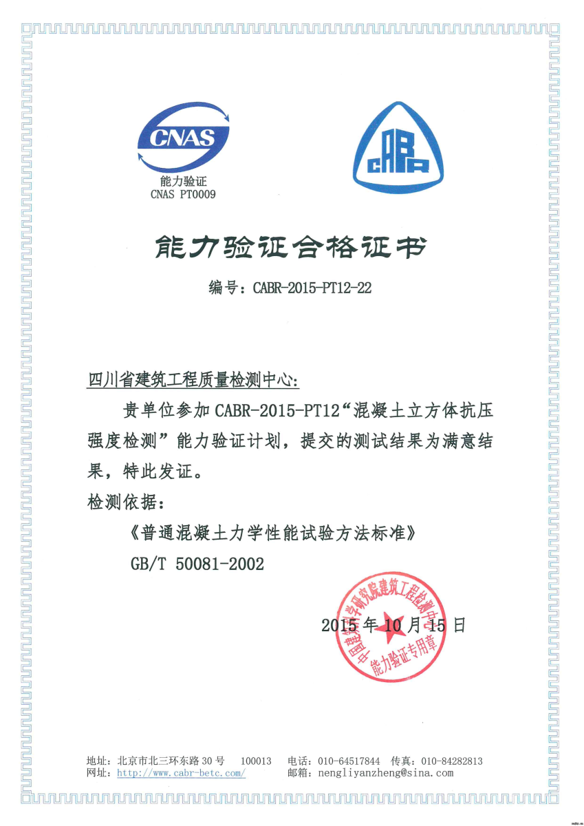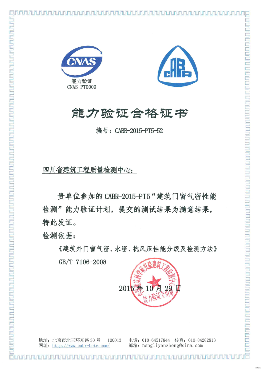 目前,接到中國(guó)建筑科學(xué)研究院建筑工程檢測(cè)中心發(fā)來(lái)驗(yàn)證結(jié)果,我院檢測(cè)中心參加的《混泥土立方體抗壓強(qiáng)度檢測(cè)》和CABR-2015-PT5“建筑門窗氣密性能檢測(cè)”均通過(guò)能力驗(yàn)證。