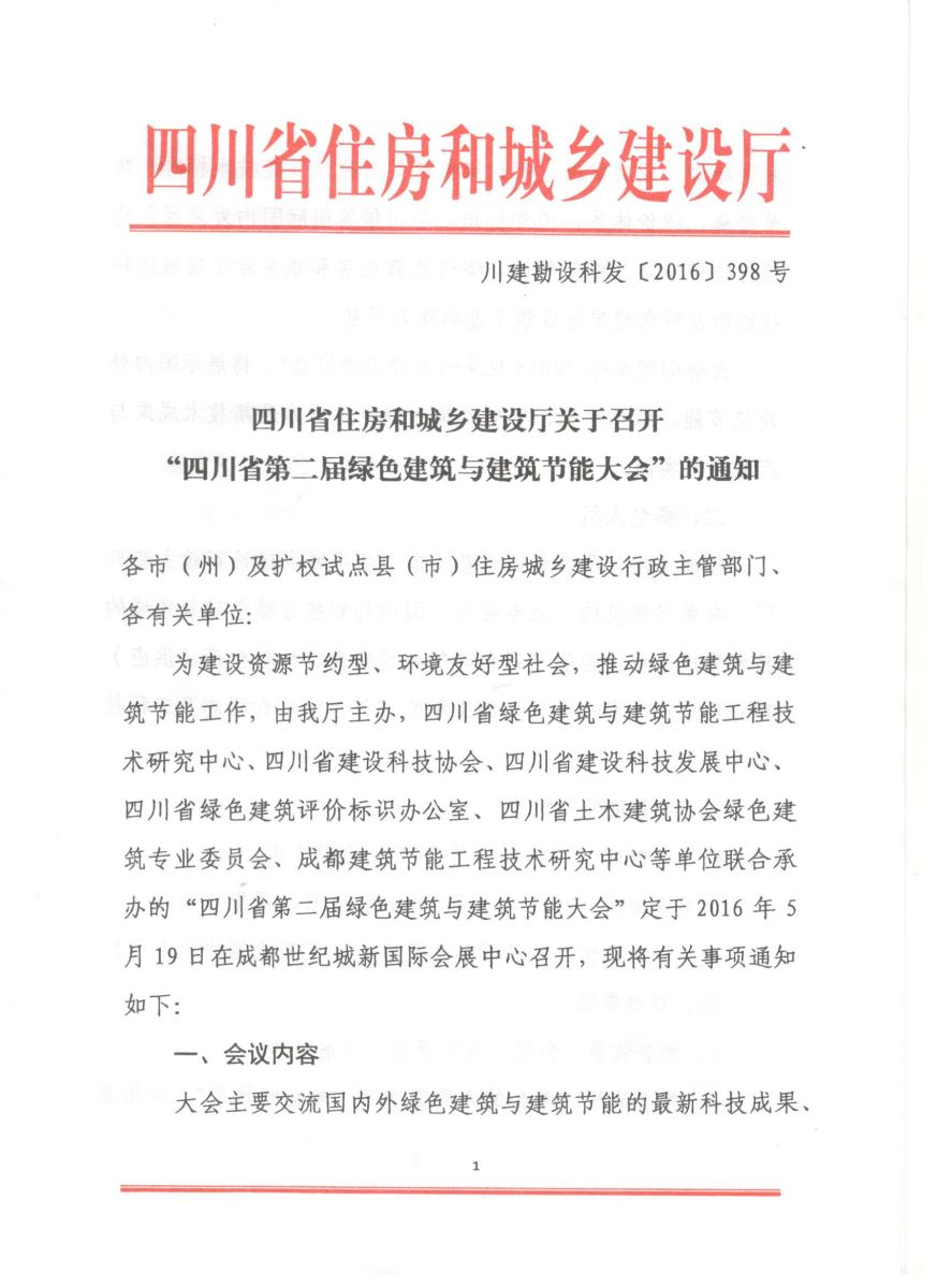 四川省住房和城鄉(xiāng)建設(shè)廳關(guān)于召開“四川省第二屆綠色建筑與建筑節(jié)能大會(huì)”的通知