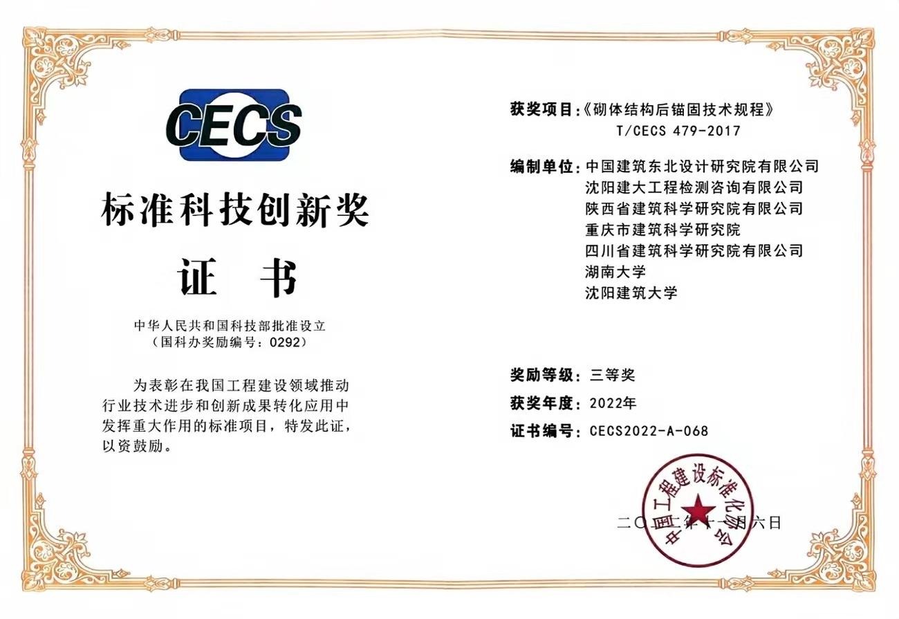 2022年標準科技創(chuàng)新獎三等獎-砌體結(jié)構(gòu)后錨固技術(shù)規(guī)程